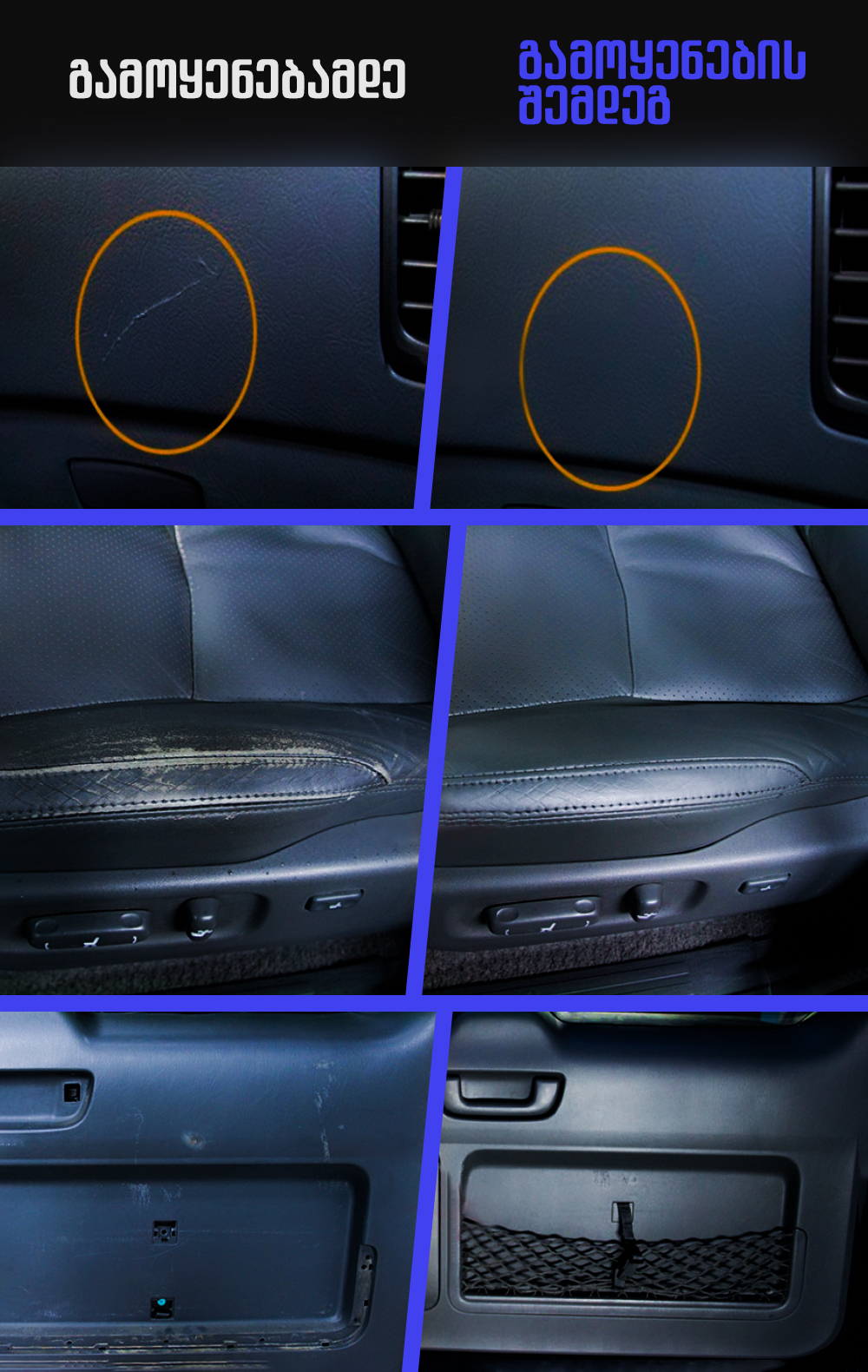 - აშორებს ნაკაწრებს და აღადგენს პლასტმასს მანქანის ძარაზე